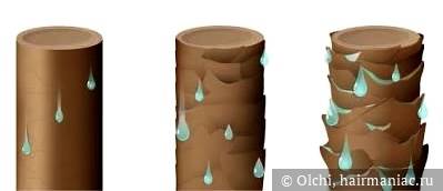 В случае с поврежденной, пористой структурой процесс диффузии работает против волос с удвоенной силой: