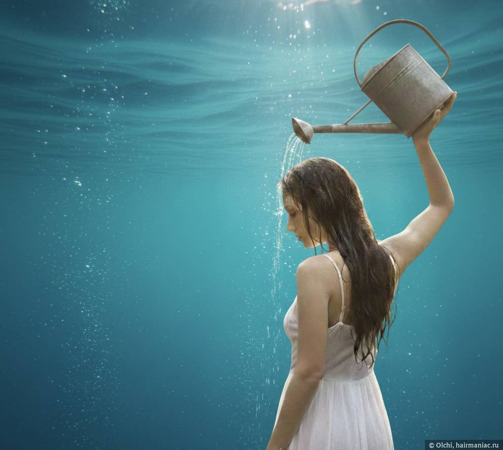 Нужна золотая середина — избыток воды так же нефизиологичен для волос, как и ее недостаток.