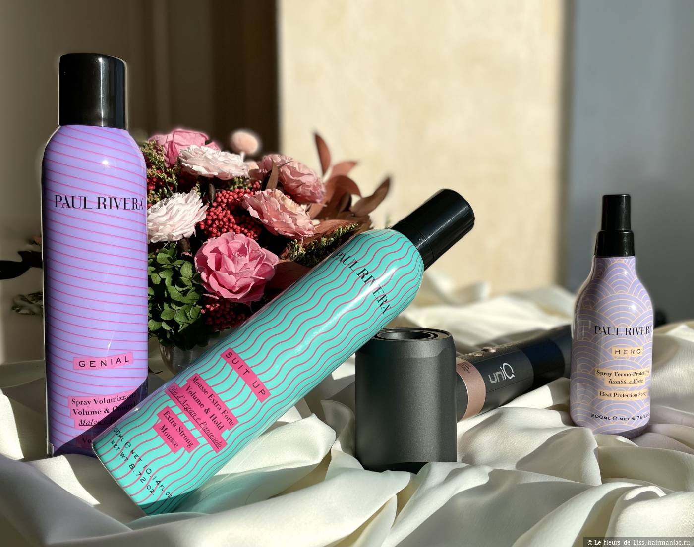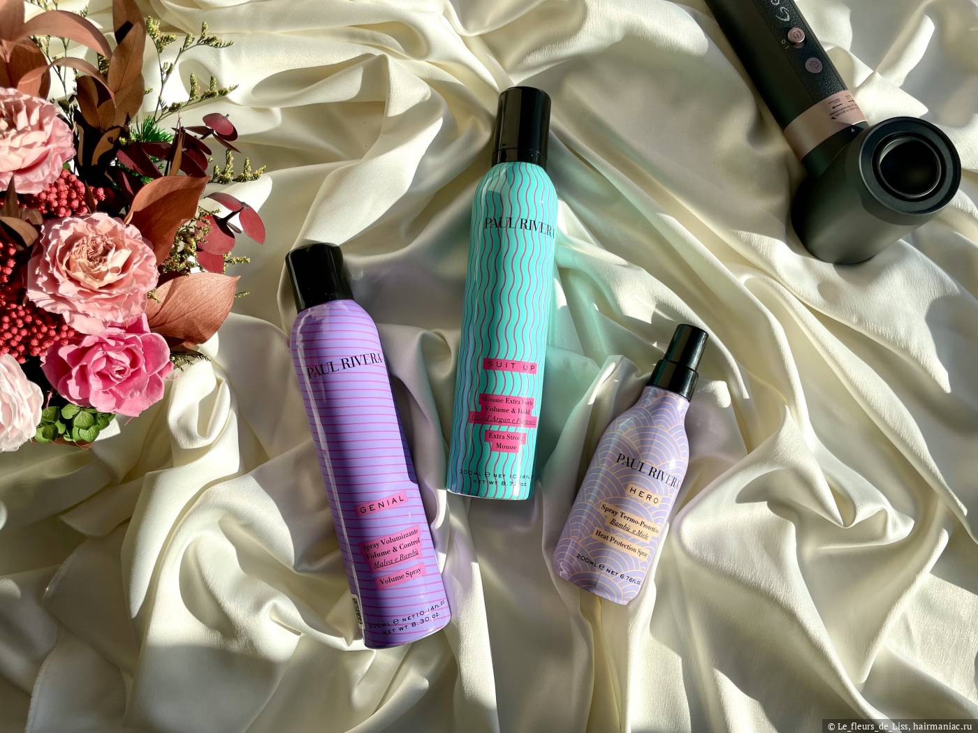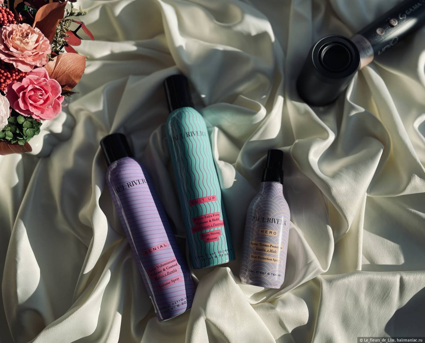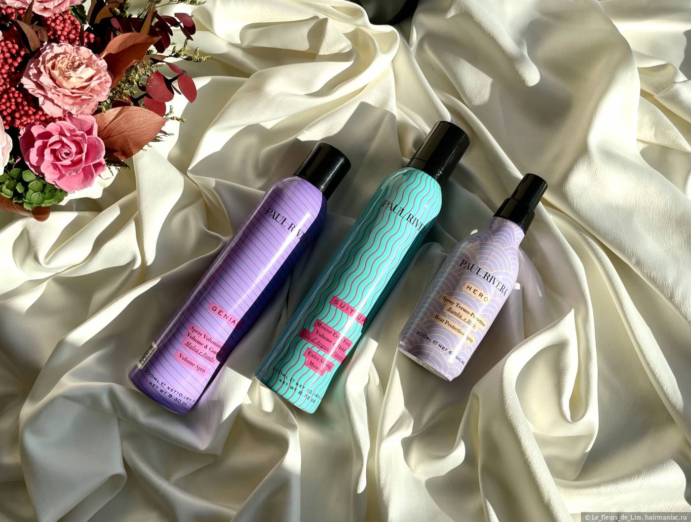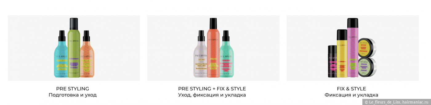 Даже если мельком просмотреть перечисленные мною посты, можно увидеть, насколько сильно мне нравятся средства и как трепетно я отношусь к этим баночкам. Именно поэтому, когда встал вопрос выбора стайлинга, я решила изучить, а что есть на эту тему у моего любимого итальянца Paul Rivera? Глаза при изучении оф. сайта, естественно, разбежались, потому что средств, как и у любого профессионального бренда косметики, оказалось ооочень много, они имеют разную направленность, но абсолютно все притягивают взгляд своим ярким дизайном. Я выбрала три средства с разными эффектами и принципами работы: термозащита для ухода и дополнительного увлажнения, спрей для объема и создания текстуры, ну и мусс для мега-объема как у кинодивы.