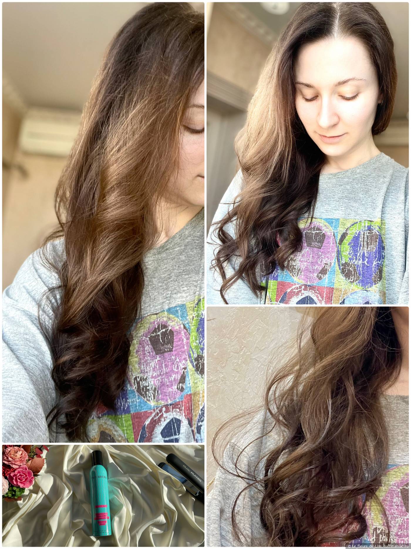 На всех фото я использовала мусс как соло, так и в сочетании с термозащитным спреем.