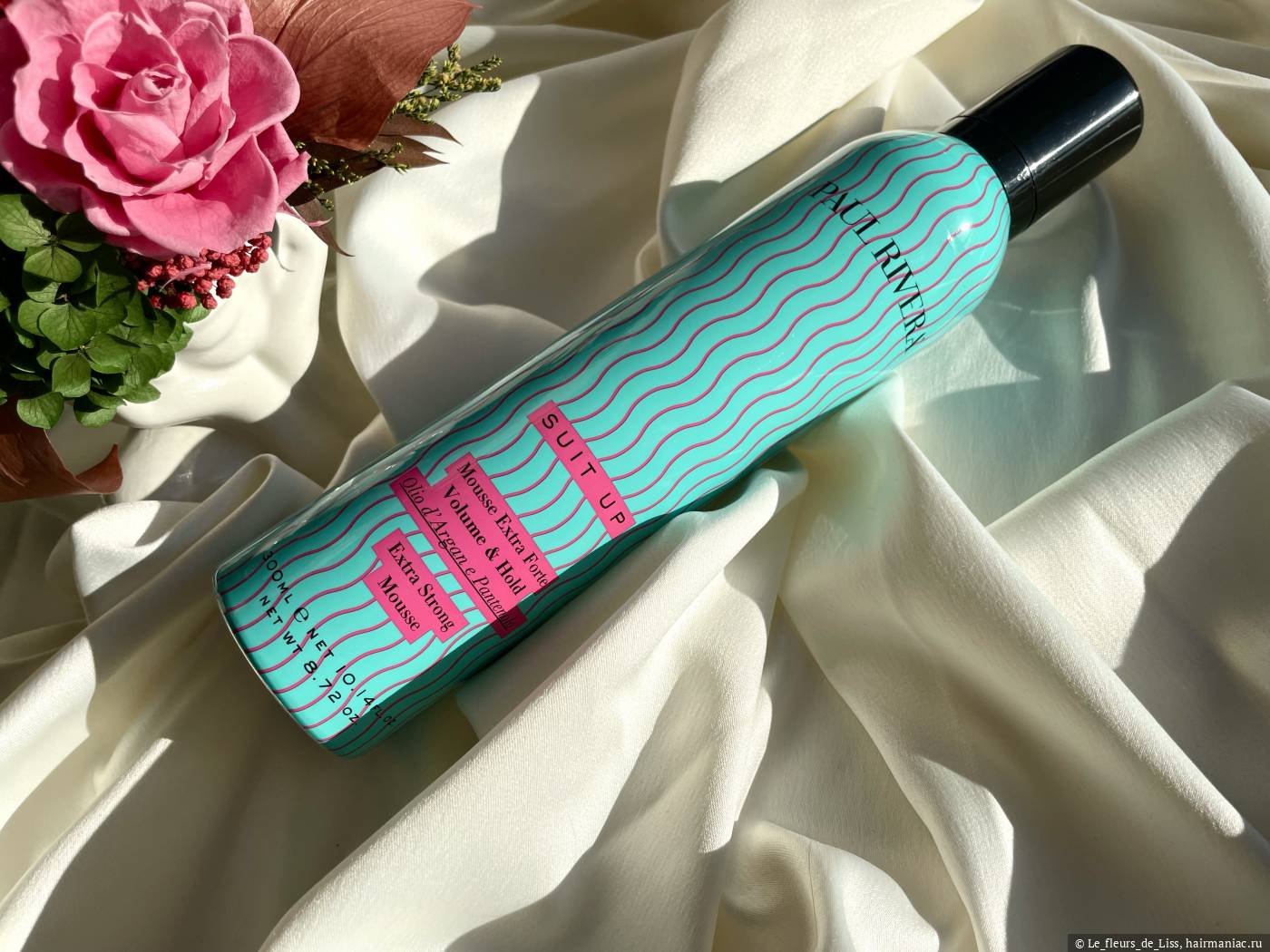У бренда есть два мусса - как у меня экстрасильной фиксации с пантенолом и аргановым маслом (бирюзовая бутылочка) и просто сильная фиксация с маслом авокадо и экстрактом василька (оранжевая бутылочка). Они разные! Текстура и эффект у них заявлены тоже разные, будьте внимательны при покупке. Нереально крутой (это был спойлер))) именно мусс в бирюзовой бутылочке.