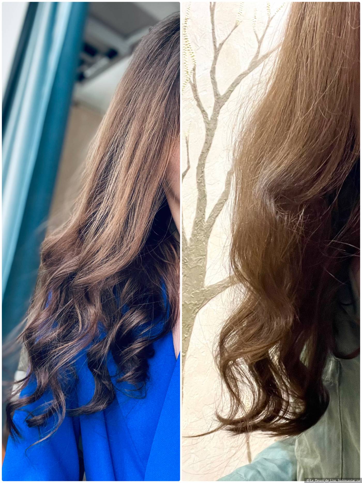 На фото ниже та же самая укладка способом №2 на стайлер, но уже спустя время носки: слева на фото вечер, укладка трансформирована: я взбила волосы у корней руками и объем снова подпрыгнул и увеличился. Волосы целый день не расчесывались. А справа волосы расчесаны, фото сделано на следующий день утром, объем по-прежнему на месте, легкая волна тоже осталась.