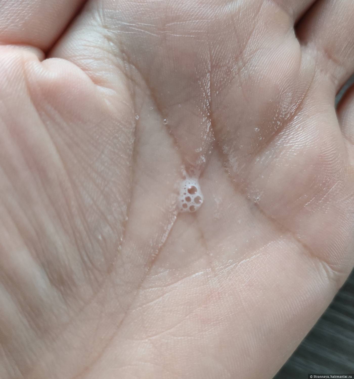 Текстура однородная, гладкая без каких-либо вкраплений. По тактильным ощущениям пилинг также похож на обычную воду. При распылении появляется небольшая пена, которая хорошо видна на фото.