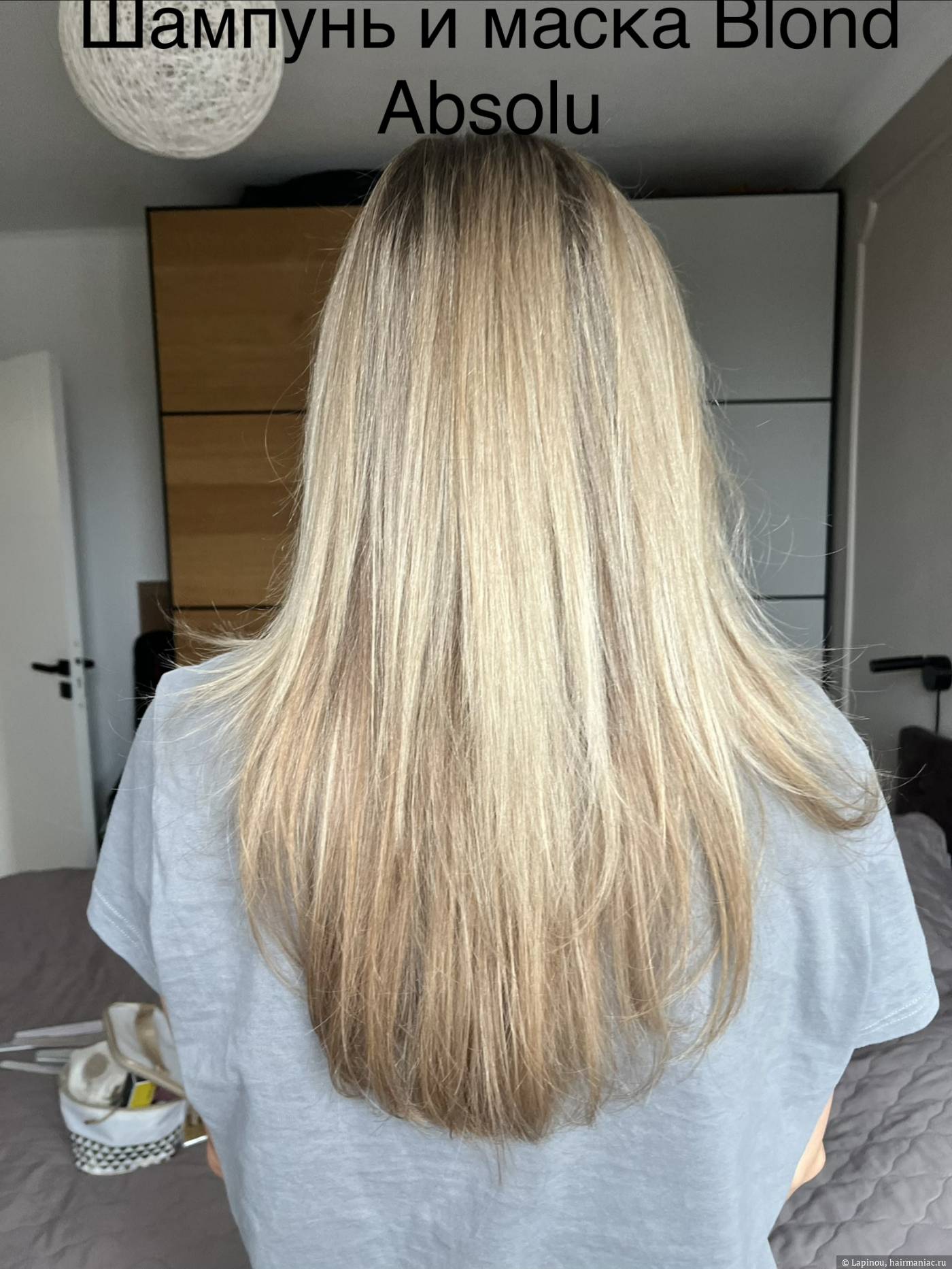 После шампуня и скраба, на волосы нанесла маску Blond absolu (спойлер