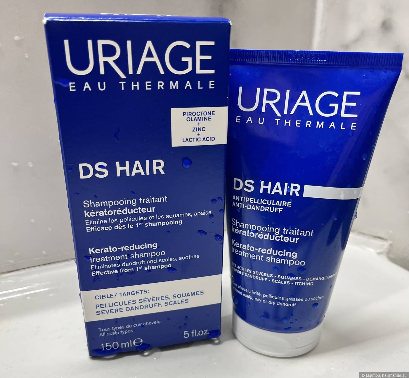 - Шампунь от перхоти Uriage DS (c lactic acid, zinc и Pirocton Olamine).