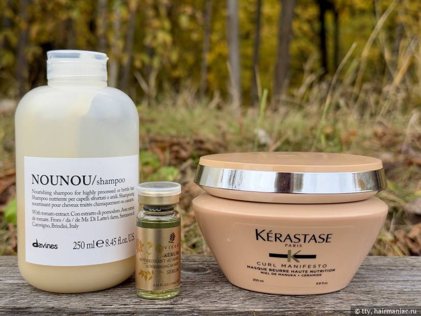 В этот день я впервые использовала маску Kerastase сurl manifesto. Конечно, первое, что я отметила, открыв маску, это ее невероятный аромат. Принятая, тонкая, сливочно-сладкая пудра. Запах на волосах задерживается. Выдерживала недолго, около 5 минут. После сушки феном дополнила полотно медовой сывороткой Vieso.